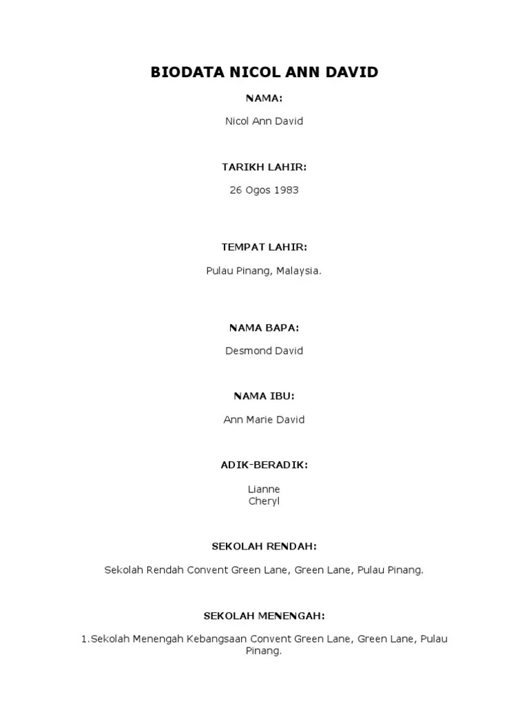 Jom kita baca biodata datuk nicol ann david dan selami kejayaan beliau nicol ann david biodata. Datuk nicol ann david docx datuk nicol ann david datuk nicol ann david merupakan pemain skuasy professional malaysia beliau telah mengukir .